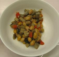 圧が下がったら、残りの材料を重ねて入れる。塩で味つけし、必要があれば豆がかぶるくらいまで水を足す。ふたをして、沸騰したら弱火にし、材料が柔らかくなるまで、20分煮る。 |