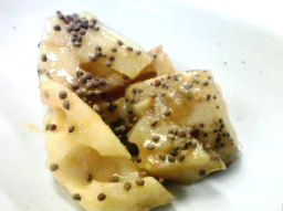 すりばちに味噌、玄米酢、米飴を入れて混ぜる。1の蓮根を加えてよく混ぜる。