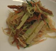 鍋にお湯を沸かし、人参・セロリの順にゆでて、冷ます、春雨を入れて3分ゆでる(袋の表示通りにゆでる):水気をきり、冷水で洗い、再び水気をよくきる。