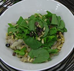 ペンネをざるにあけて水を切る。ゆで汁は捨てずにとっておく。ゆで上がったパスタをソースに加え、さらにオリーブも加える。パスタのゆで汁で濃度を調節し、味が足りなければ、塩を加えて味を整える。 |