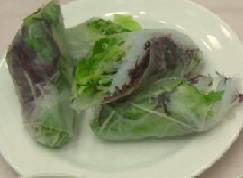 ぬるま湯に生春巻きを浸し、濡れ布巾に広げる。共を少しのせて巻く。生春巻きを切り、器に盛ってソースをかける。