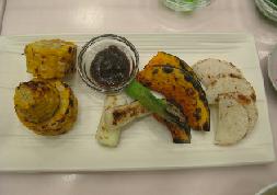 焼き網で野菜を焼く。焦げないように気をつけて、何回かひっくり返す。バルサミコ味噌ソースを添える。