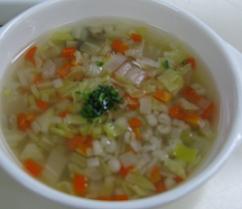 鍋に丸麦・水(またはだし汁)・ベイリーフを入れ、火にかけて沸騰させる。ふたをして火を弱め、弱火で30分煮る。